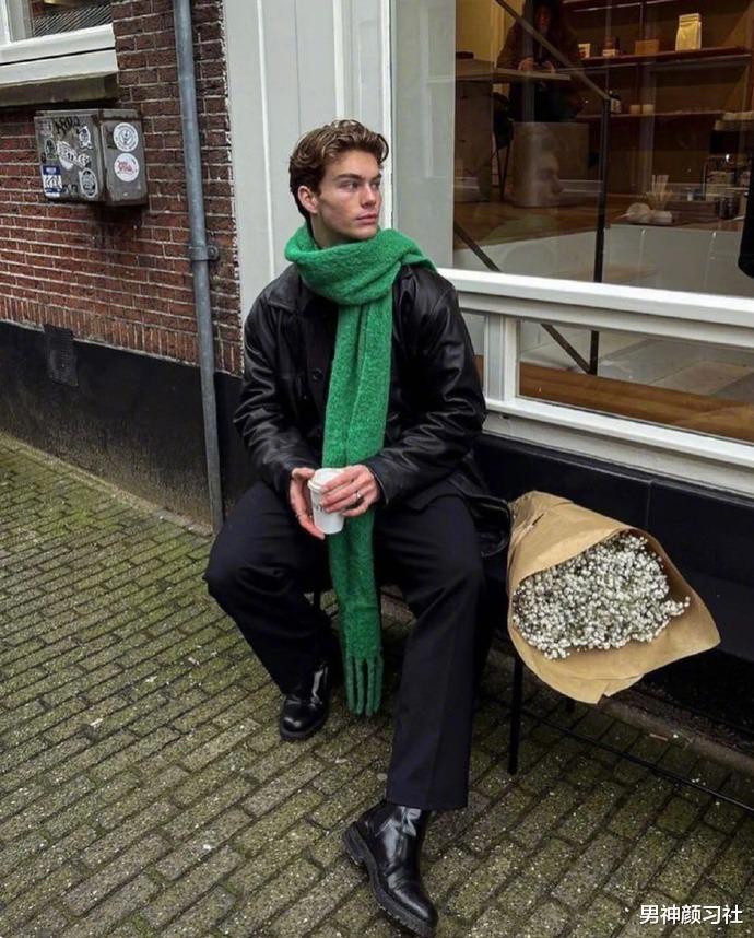 颜色呼应大法比较适合对穿搭有追求的男生。一个高级的穿法是围巾与鞋子同色或者围巾与裤装同色。这种色彩的上下呼应,能让你的整体造型逻辑感极强。