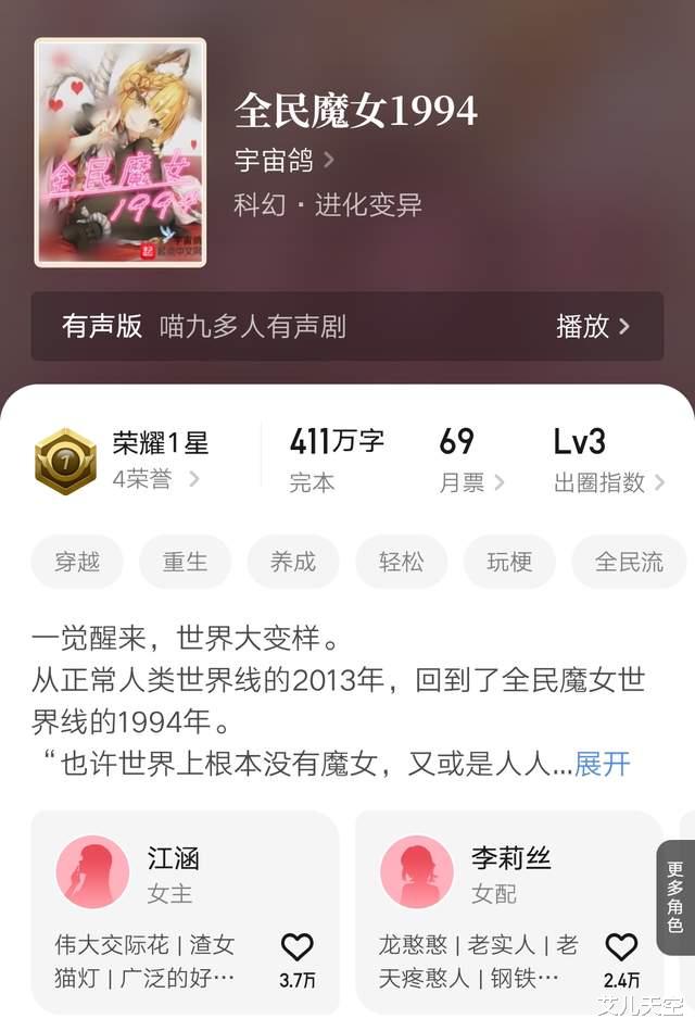 全民魔女四年前完结后,他后面写了其他题材的两本小说,只是成绩也不太理想,不过作者看着也没着急,反正一路写过来了。