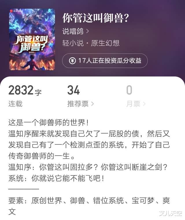 如今时隔半年多,作者再次尝试原创御兽题材了,这次结合了错位系统元素来展开,能不能成就看后面表现了。