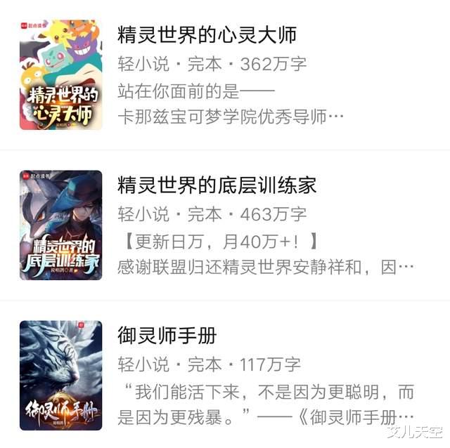 作者之前主要写宝可梦同人文,其中《精灵世界的底层训练家》万订成绩。