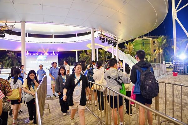 7月15日凌晨3时左右,天色尚暗,满怀期待的师生们早已聚集在观礼现场等候。尽管凌晨的海风带着些许闷热,但丝毫没有消减大家的热情。据领队介绍,团队提前两小时抵达观礼现场,集结出发时,全体师生无一人迟到。