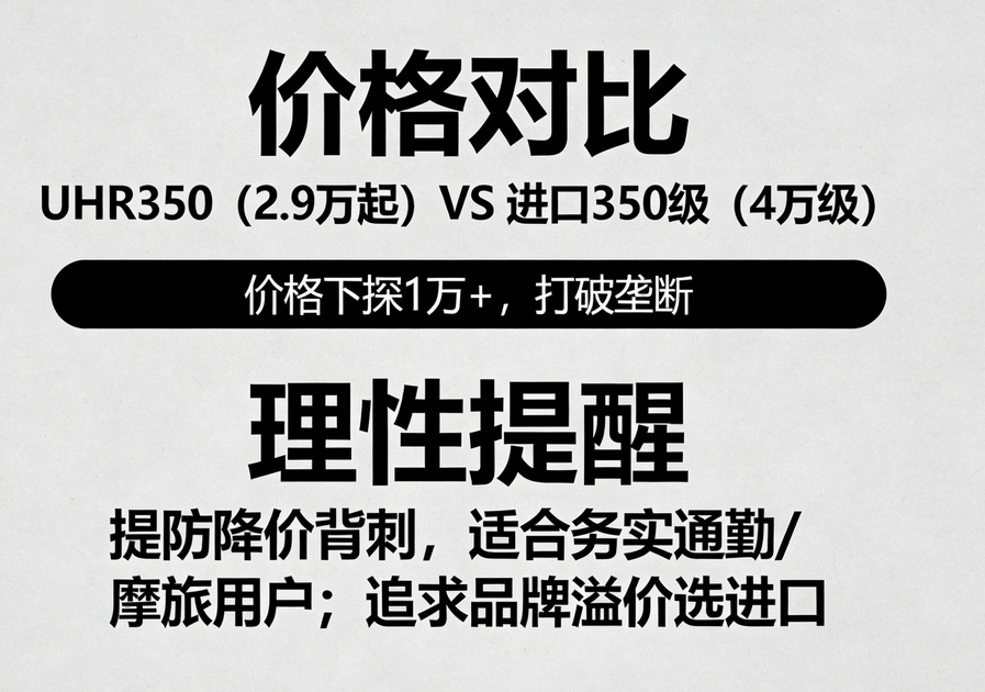 UHR350不只是搞低价竞争,而是靠着「价格亲民+实用配置+可靠质量管控」,试着打破进口垄断,给国产中排踏板找个出路,已经有不少预订进口车的车友退订等着(买它),由此能看出它切中了性价比需求。