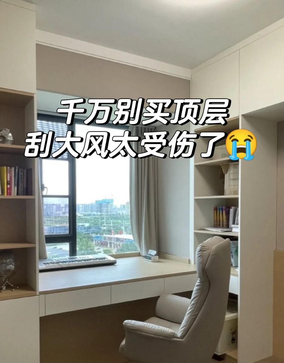 我买的还是楼王,视野是真开阔,但风也是真大!当初想着在露台晾晒被子衣服多方便,现实是,秋冬季节风大的时候,衣服夹子都夹不住,分分钟给你吹到楼下小区里去。晚上睡觉,那风噪更是绝了,鬼哭狼嚎的,就算用了双层中空玻璃,也挡不住那声音往屋里钻,感觉像住在高山垭口。