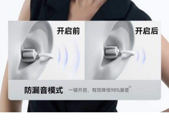 漏音是耳夹式耳机的通病,开放式的佩戴设计难免会有声音外泄,不仅会泄露自己的听音内容,在公共场景还容易打扰到旁人,严重影响使用体验。所以选款时,是否有专门的防漏音设计是必看的一点,不管是品牌自研的防漏音模式,还是专属的防漏音技术,有这类设计的耳机能大幅降低声音外泄,既保护了个人隐私,公共场合也不会尴尬。(如虹觅的防漏音模式和华为的逆声场技术)