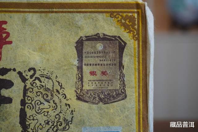 这款茶曾获得2006年首届云南茶博会银奖,包装纸右侧有银奖奖章证明,印刷非常清晰,呈棕色式样,奖章的边框纹样都印制得清清楚楚。这款茶市面上有不少假冒品,这里多放几张细节图,供大家对比参考,以免受骗上当。