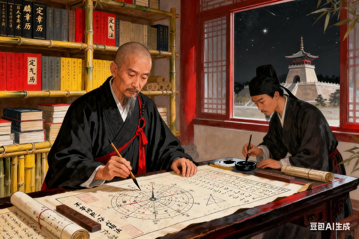 他的“定历”之功,凝结在《大衍历》的精密推算中。在实测数据的基础上,他摒弃《麟德历》的“平朔法”,首创“定气法”——以太阳在黄道上的实际运行速度确定节气,解决了以往“节气与物候不符”的问题;他发明“不等间距二次差内插法”,用于计算日月星辰的运行轨迹,精度远超前代,这种数学方法,比欧洲同类算法早了近千年;他还在历法中加入“九服晷影”计算法,能根据不同地区的纬度,精准推算当地的日影长度与昼夜变化。《大衍历》修成后,玄宗命太史局核验,结果“推步之法必与天合”(《旧唐书·僧一行传》):预测的日食、月食分秒不差,推算的节气与农时完美契合,连西域的胡商也惊叹“大唐历法之准,如日月运行不爽”。这部历法,自开元十七年颁行后,沿用近百年,更传入日本、朝鲜,成为东亚各国制定历法的范本。他的智慧,更在“禅与科技的交融”。作为僧,他认为“佛法不离世间法,天道可借科技知”,不将天文观测视为“亵渎神明”,反而以“测天”印证“天道有序”;作为科学家,他不排斥佛法的“顿悟”,在观测陷入困境时,常以禅定澄心,从“天地自然”中获得灵感——比如他从“水流不息”中悟到“日月运行亦有常度”,进而完善了“日月行度的计算模型”。这种“兼容并蓄”,让他既避免了玄学的虚妄,也跳出了经验主义的局限,成为唐代“科技与文化交融”的典范。