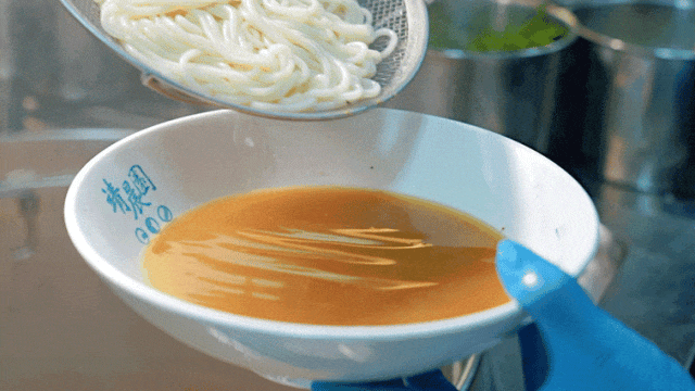 米线好,汤也同样重要。后厨有一口巨大的汤锅,每天都要开火熬煮4小时,把骨头里的肉香味儿全都吊出来。这样煮出的米线才能十足鲜美~