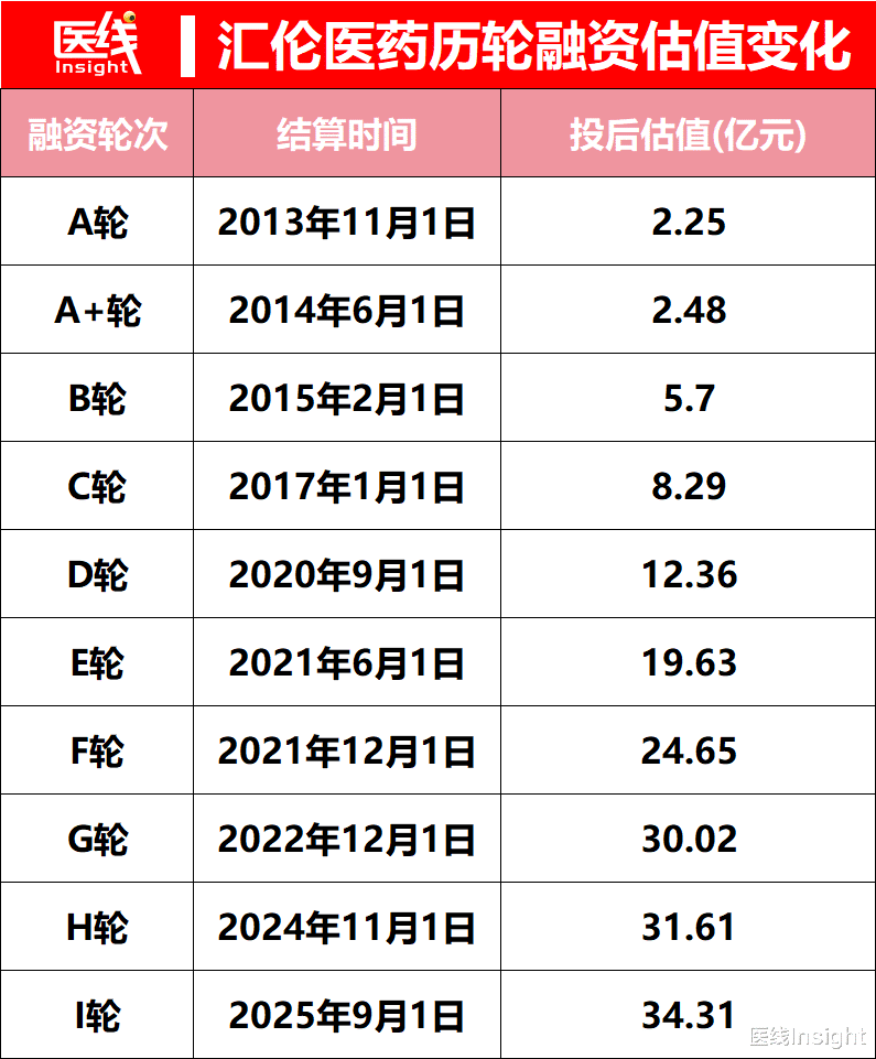 招股书显示,自2013年10月启动A轮融资起,至2025年9月完成I轮融资,汇伦医药在12年间共计完成了10轮融资。