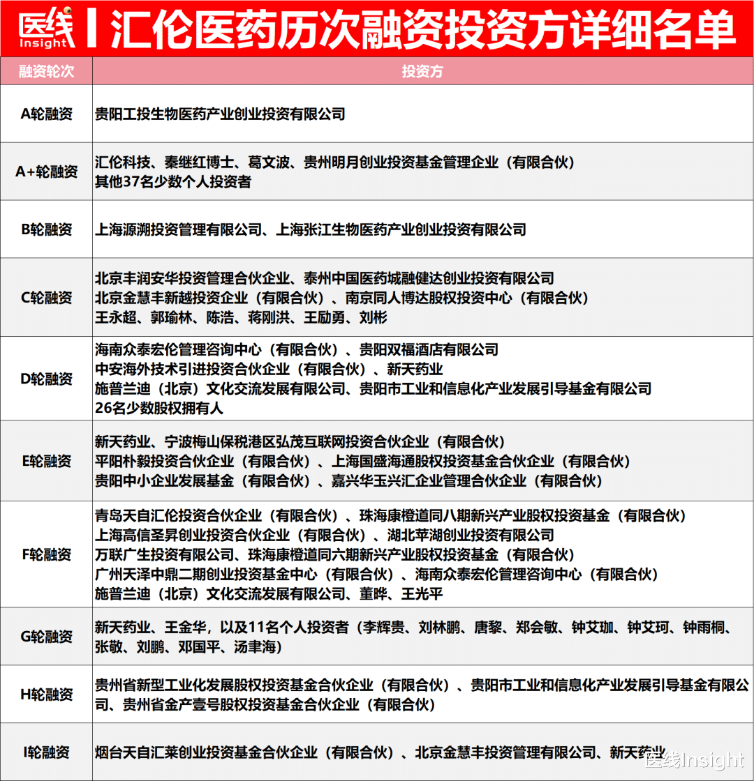 此外,由于汇伦医药目前的生产基地位于江苏省泰州市,代表泰州的“融健达创投”也参与了投资;代表广州的“万联广生”和“广州天泽”,以及代表泸州市的“上海高信”(穿透后为北海璞湛等)也相继入局。