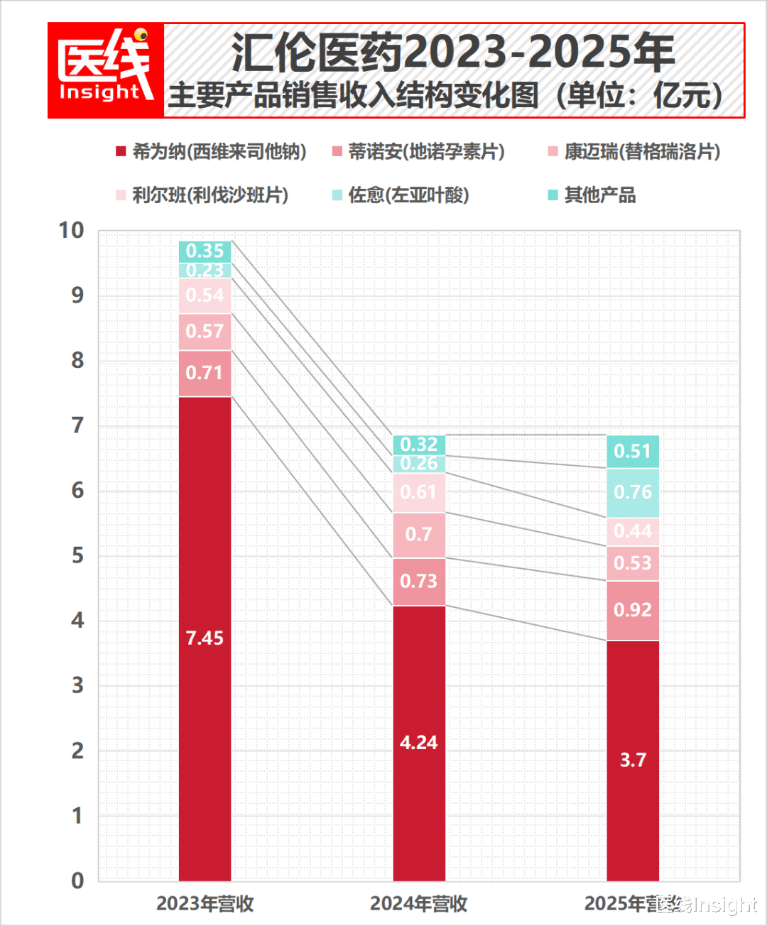 但随着疫情后临床需求回归常态,加之分销商调整库存水平,希为纳在2024年和2025年的销售额分别骤降至4.24亿元和3.70亿元,营收占比分别下滑至61.9%和54.0%。