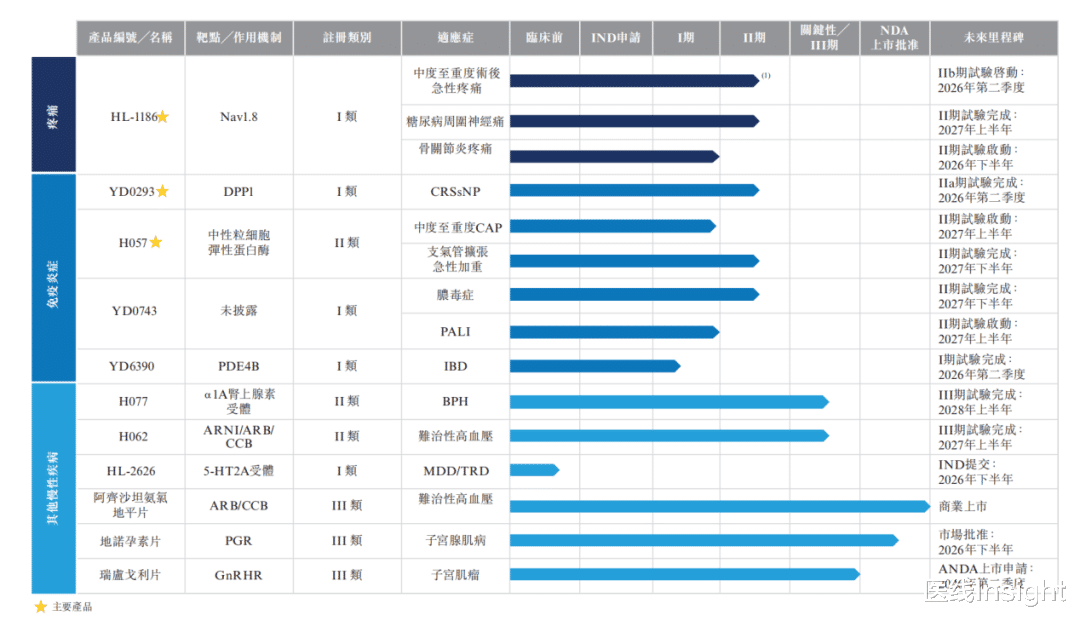 一是HL-1186。这是一款靶向急性和慢性疼痛的1类创新药(高选择性Nav1.8抑制剂),旨在提供无成瘾性的非阿片类镇痛替代方案。