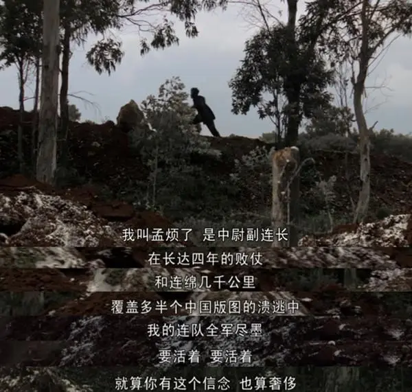 在第一集里,我们看到孟烦了的自述:“我叫孟烦了,是中尉副连长,在长达四年的败仗和连绵几千公里覆盖多半个中国版图的溃逃中,我的连队全军尽墨。要活着,要活着。就算你有这个信念,也算奢侈。”