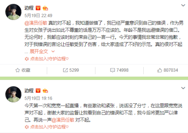 所以边程也出来道歉了,但任敏只说交给时间。有些粉丝为他开脱,说他年纪小,不懂事。