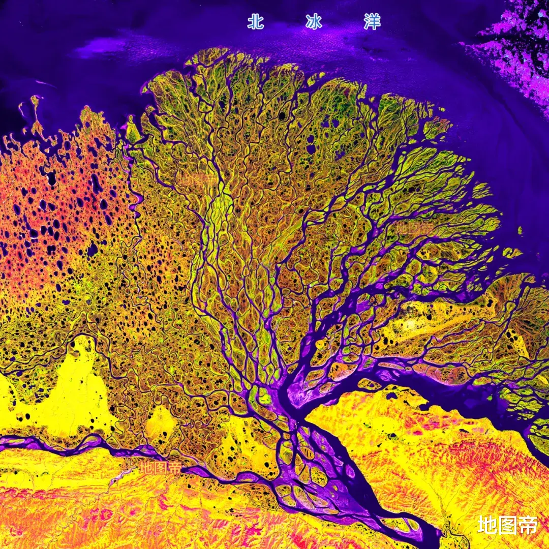 勒拿河拿河三角洲,呈鸟足状,面积约3万平方千米。一年中大约七个月,勒拿河三角洲被冻结为冻原,在五月份之后,有几个月郁郁葱葱的湿地。