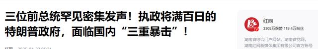 2.《三位前总统罕见密集发声!执政将满百日的特朗普政府,面临国内“三重暴击”!》红网2025-04-22 05:21
