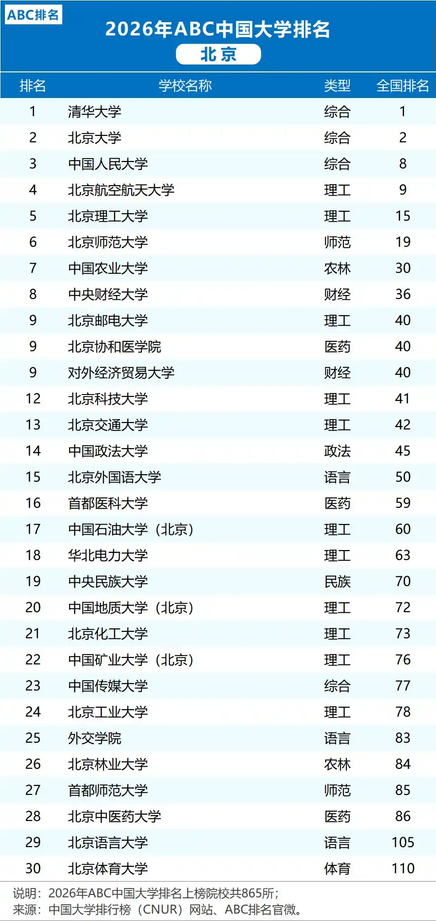 北京高校排名大调整引起了广泛关注,2026年ABC中国大学排名北京地区榜已经公布,一些学校的位次变化成了讨论的焦点。根据这份包含全国八百六十五所上榜院校的榜单,北京地区高校的竞争格局出现新的特点,一些传统强校的地位依然稳固,但是部分特色院校的排名变化也提供了观察高等教育发展的新角度。排名公布之后,再次把人们的视线引向首都高等教育整体生态和个体院校的发展轨迹。