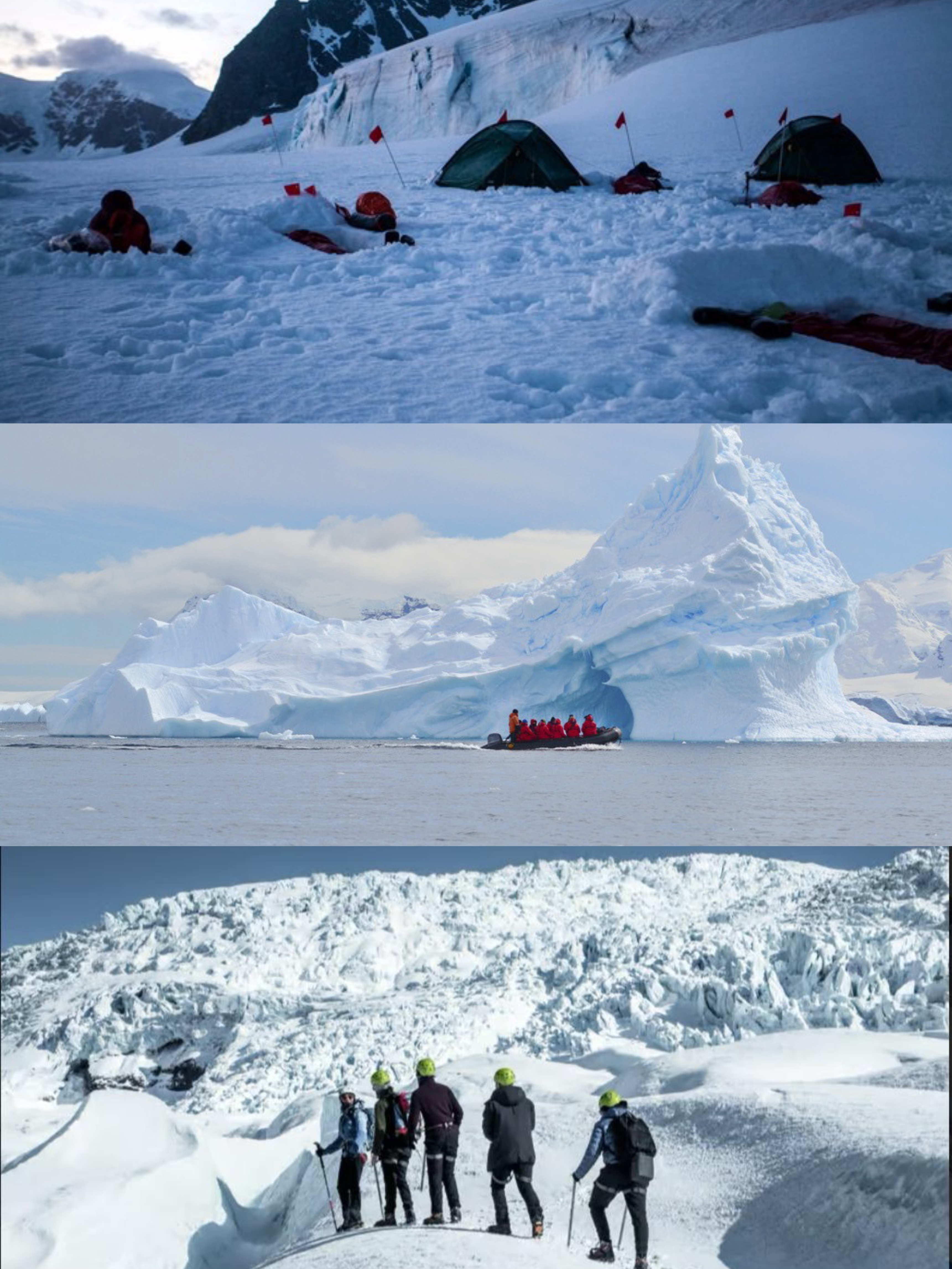 这绝对是南极体验的天花板🏆!在雪地搭帐篷⛺,伴着冰川崩裂的声响入睡,抬头就是漫天极光和璀璨星空🌌,浪漫又刺激,不过对体能和勇气都是超大挑战,敢冲的都是狠人💪!