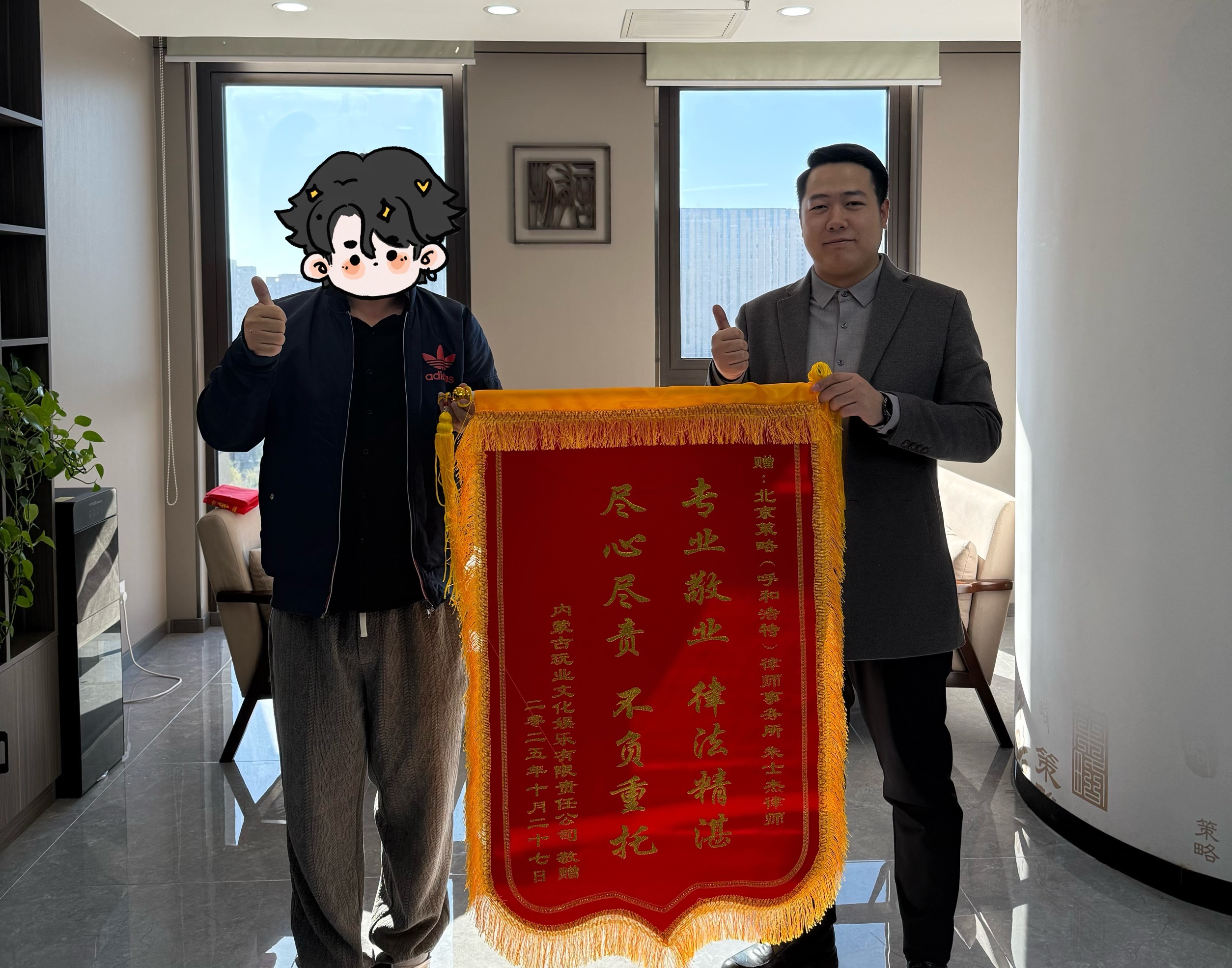“要是没遇到朱律,我这公司的麻烦真不知道要拖到什么时候!”近日,客户手持印着“专业敬业律法精湛,尽心尽责不负重托”的锦旗,专程赠予朱律团队,言语间满是感激。这面锦旗,既是对案件结果的认可,更是对团队专业能力与负责态度的肯定。