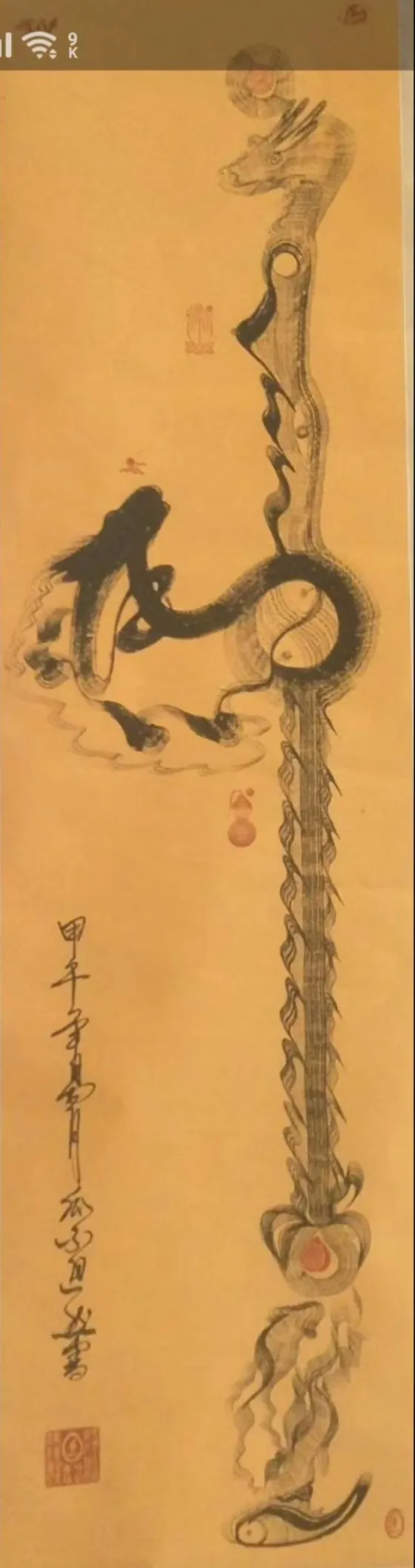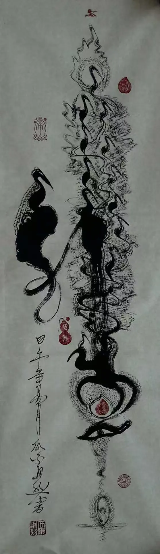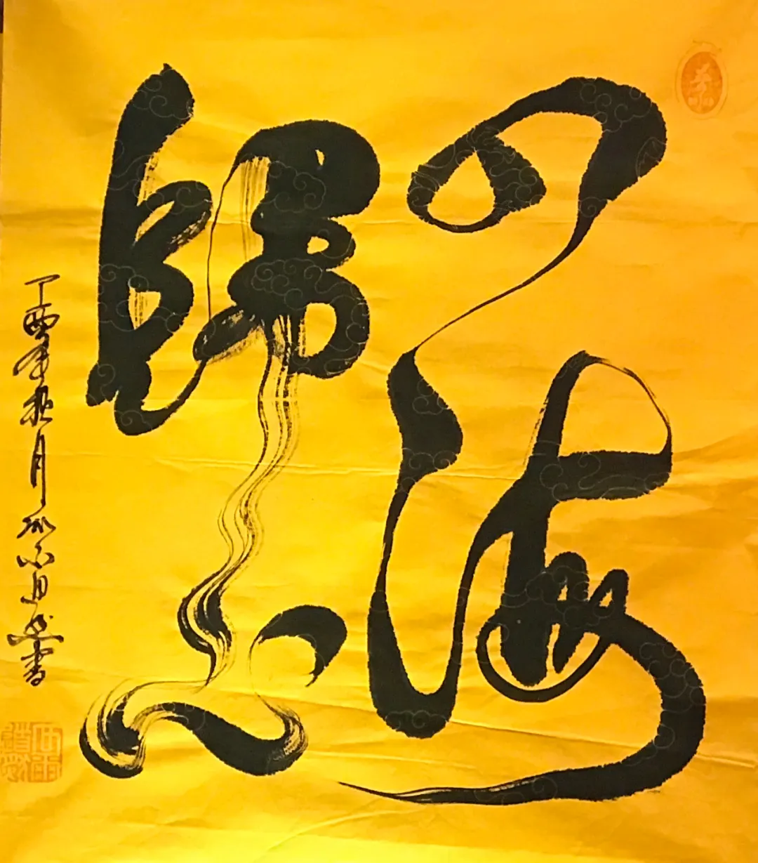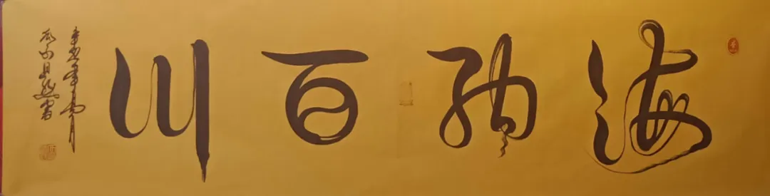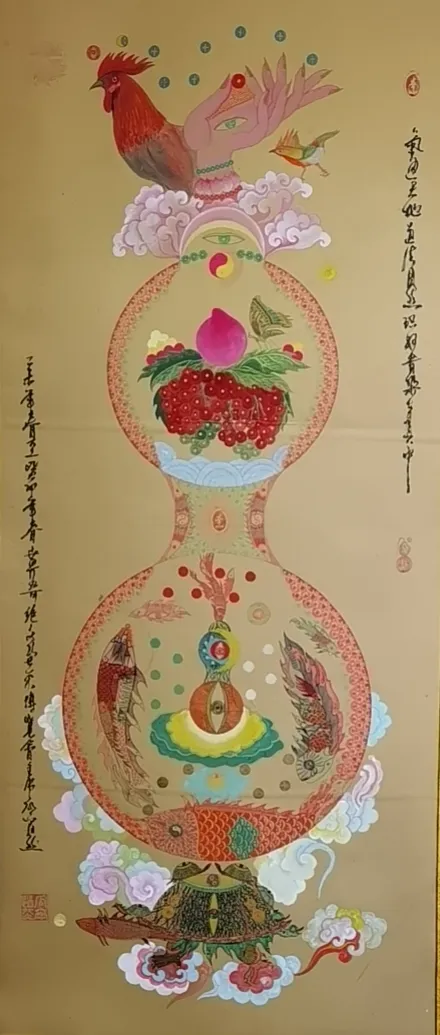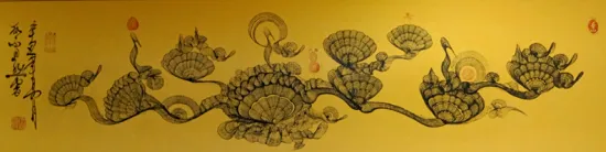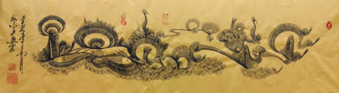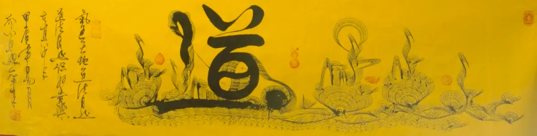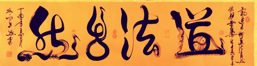 瓜尔道然的“神”来之笔、“道法自然”、“一笔驷马难追”的独树一帜的书画艺术作品,在点、线、画、运笔、用墨及色彩、韵律方面,自然流畅、变化无穷、耐人寻味,其标新立异的创举令人感悟与遐想。书法作品“神”字,各有独特含义,他的浓墨、飞白,遒劲有力、挥洒纵横、行云如水、一气呵成,“神”字的形旁似一匹奔腾的骏马高歌猛进,声旁如鲤鱼跳跃龙门,又寓意平衡阴阳八卦,饱含神龙摆尾之灵韵;“马”字表象形态各异、昂首奔腾,更深层次彰显骏马的恢宏气势,团结共进,具有 “马踏祥云、马运百福、一马当先、马到成功”的美好寓意,这种极具独特、新颖的艺术手法,超乎了常人难以达到的艺术视觉与境界;“道法自然”更是一种天地万物并育融合之美,其笔韵寓意更是远无际涯,没有生活历练及高深境界将无法领悟其真正的内涵。瓜尔道然创作的每一幅作品都是饱蘸浓墨一笔而成,无愧神来之笔。