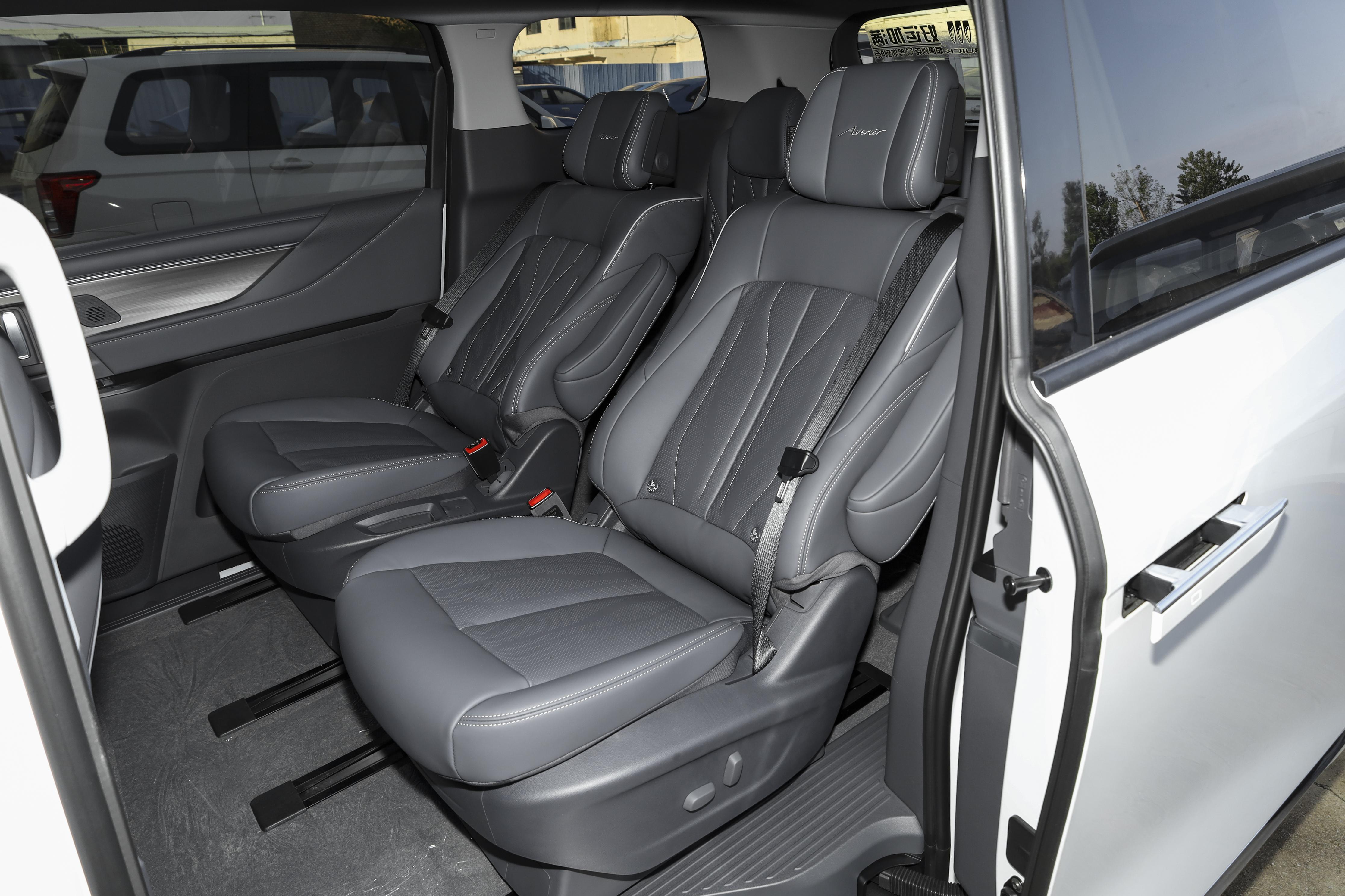 空间方面,轴距达到3088mm,身高182cm的体验者在前排调整到合适的驾驶坐姿后,头部空间尚有一拳三指的余量。保持前排座椅不动进入第二排,将座椅调整至最后位置,可以轻松翘起二郎腿,头部空间也有一拳左右。座椅不仅支持多向电动调节,还配备了腿托、加热、通风甚至按摩功能。座椅的填充物软硬适中,包裹性极佳,长途乘坐也不会感到疲惫。此外,第二排还贴心地配备了小桌板,无论是放置笔记本电脑临时办公,还是给孩子放些零食玩具,都相当方便。进入第三排,得益于剧院式的座椅布局和车身尺寸优势,即便在第二排留有一拳腿部空间的情况下,第三排的腿部空间依然不会感到局促,头部空间也未见压抑感。后备厢在常规状态下的容积为521升,可以轻松应对日常购物或装载数个登机箱的需求。当第三排座椅通过电动方式按比例放倒后,容积可扩展至1650升,能容纳大件行李,对于家庭周末自驾游的装载需求能较好地满足。