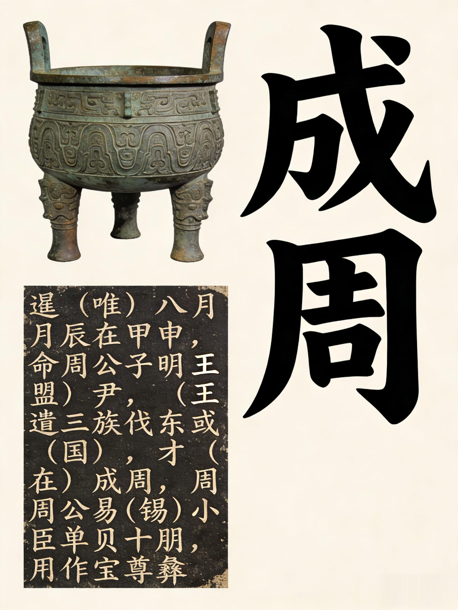 - 真实西周语境解读(成周=丰镐):“成周”为丰镐,“宅兹中国”指武王、成王定都丰镐,以关中王畿为天下之中,周王在丰镐京室诰诫宗亲,器物出土于宝鸡周原,与关中王畿地理位置高度契合,铭文叙事通顺,完全符合西周早期政治格局。