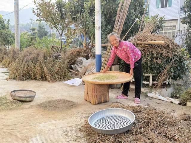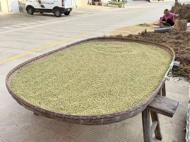 打下来的黄豆,用竹筛筛去灰土,用竹编晒盘去除杂质,最后再滚出颗粒饱满的黄豆,晒干,收藏起来。每一张幸福的笑脸,不仅是秋收的喜悦,更是治愈生活的良药。