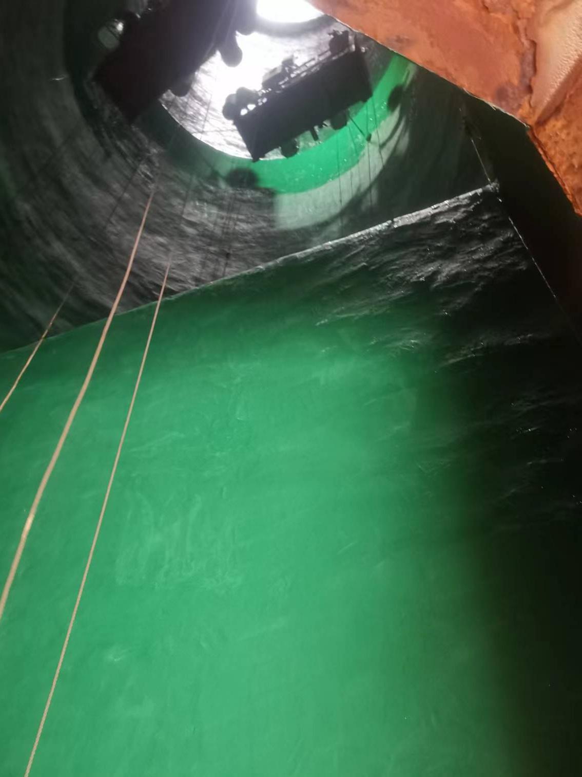 1.对烟囱内壁、外壁基层进行检查,清理浮灰、杂物、旧防腐层、松动混凝土。