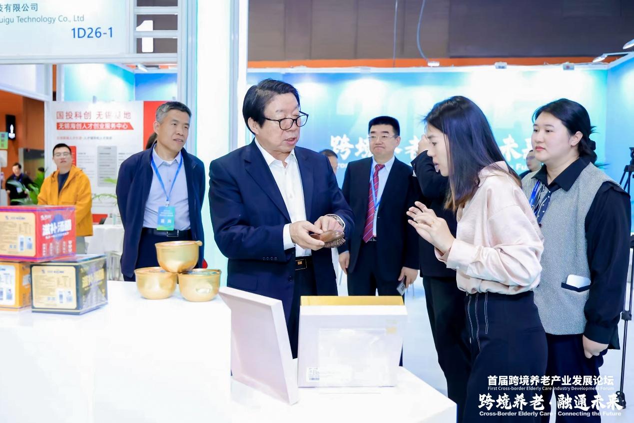 中国老龄产业协会执行会长吴世民一行到跨境养老展区参观