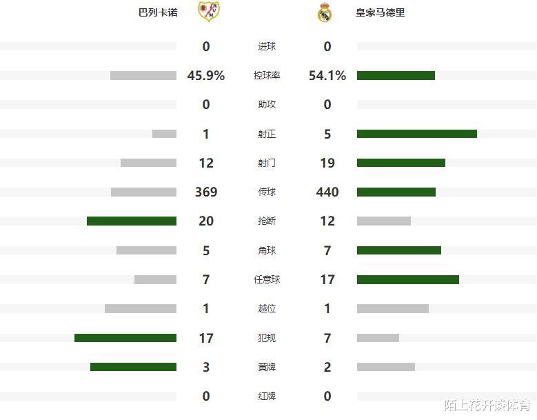 第60分钟姆巴佩才在禁区左侧完成了全场比赛第一脚打门,但没有能够命中目标,不甘心一场平局的阿隆索,随后连续换上塞巴略斯、罗德里戈和阿诺德,想要提升进攻的质量,但巴列卡诺没有给银河战舰打破僵局的机会,如愿将0-0的比分保持到了终场。