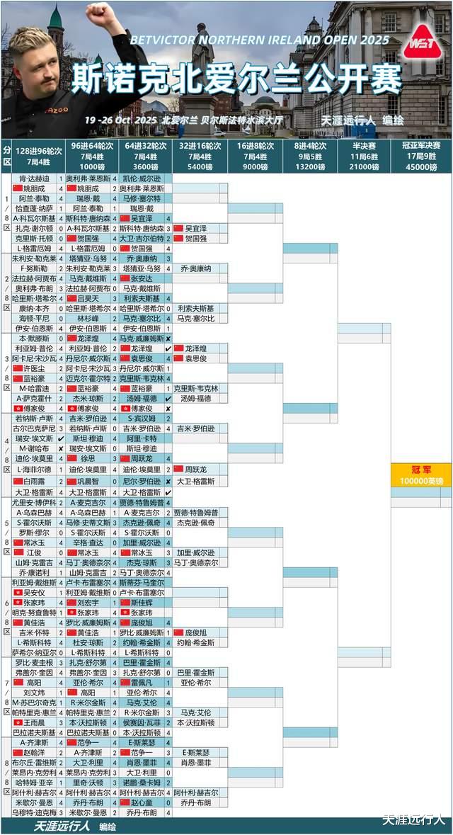 最新即时更新2025斯诺克北爱尔兰公开赛进程签表,一表看北爱赛全程,各位看官老师敬请转发收藏,以备不时之需