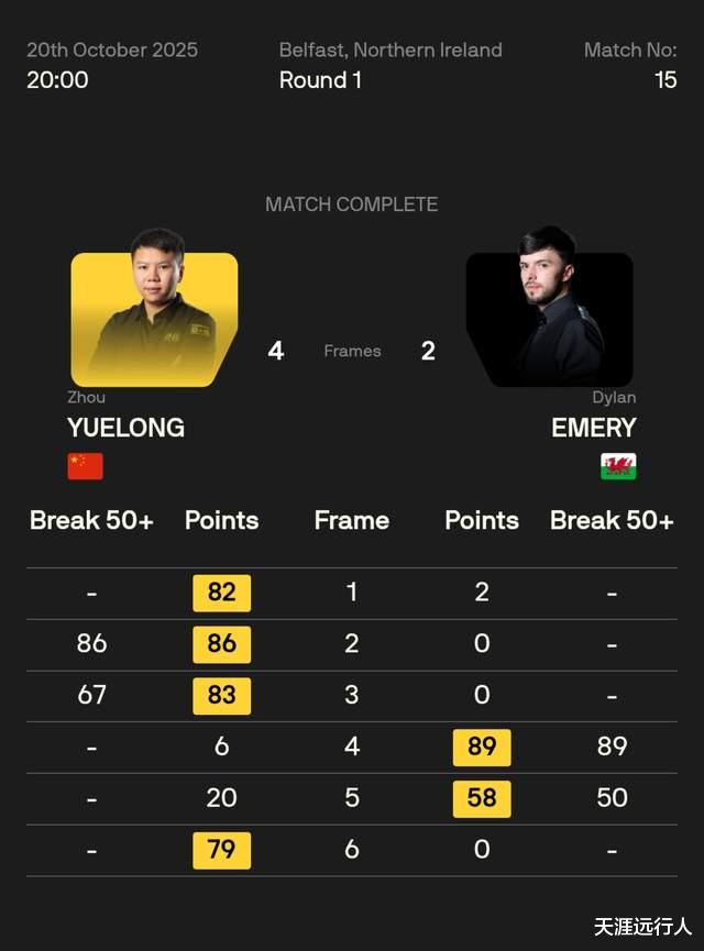 北京时间10月21日早7时03分,2025斯诺克北爱尔兰公开赛正赛阶段,64进32轮次的第二比赛日的11场角逐,全部决出了胜负,算上各种原因对手退赛(傅家俊、马威、尼尔·罗伯逊)的三位不战而胜者,赛会32强已产生26席。