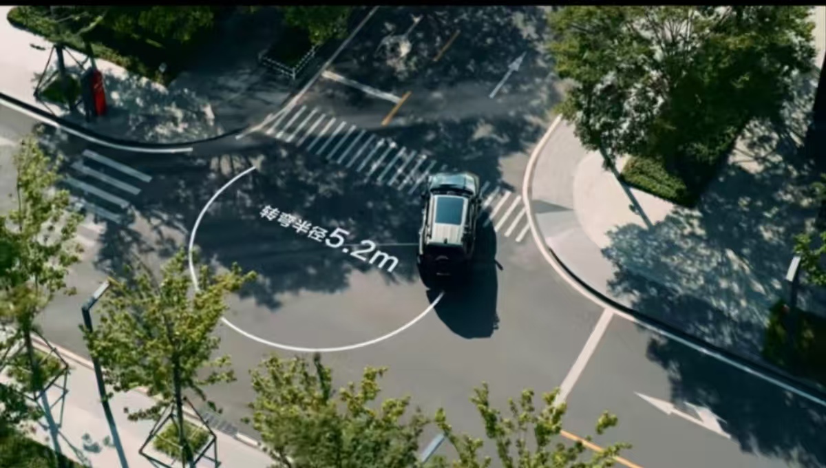 同级唯一的20°双向后轮转向系统,配合150mm可调空气悬架,创造出惊人的5.2米最小转弯半径。原地掉头功能更是将极限通过性提升到新高度——3.5米的最小转弯半径,让车辆在断头路前无需倒车即可轻松脱困。这种"智能四驱+灵活转向"的组合,彻底打破了"硬派越野不灵活"的传统认知。