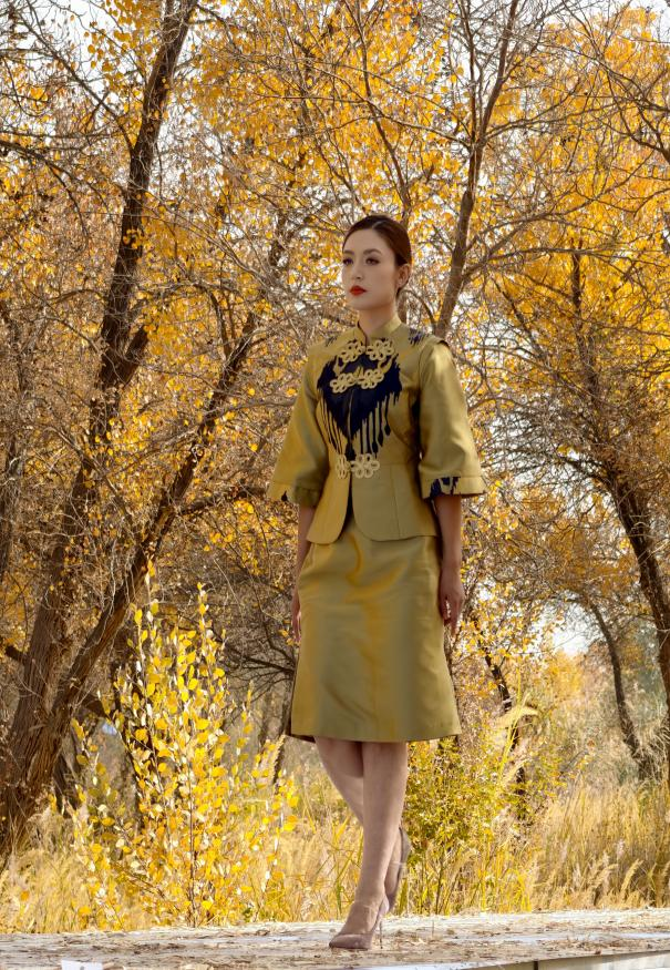 为进一步贯彻落实习近平总书记出席新疆维吾尔自治区成立70周年庆祝活动期间的重要讲话精神。10月17日,上海工程技术大学师生团队远赴新疆,在第六届喀什丝路文化胡杨节暨泽普第十六届金湖杨旅游文化季期间,成功举办了“千年丝路——中国传统旗袍遇见艾德莱斯”新品首发活动。