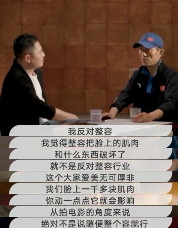 “我反对整容,我觉得整容把脸上的肌肉和什么东西破坏了。不是反对整容行业,这个大家爱美无可厚非,但我们脸上有一千多块肌肉,你动一点点它就会有影响,从拍电影的角度来说,绝不是说随便整个容就行。”