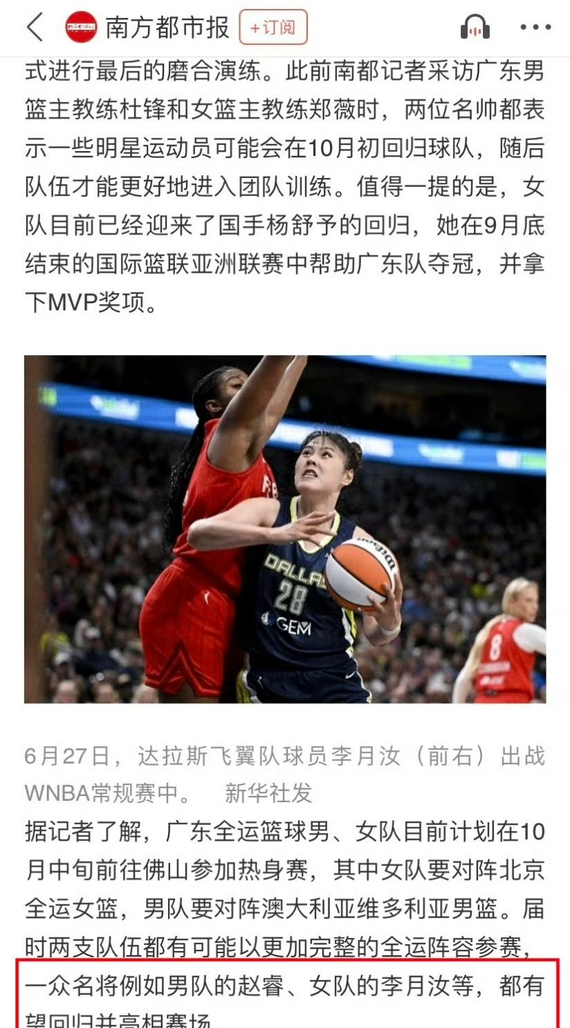 另外根据《南方都市报》报道,李月汝有可能会在10月中旬回国备战全运会,个人认为这个可能性不大,这半个月的时间,李月汝不可能恢复好身体。如果说11月份能回国参赛,那还是有点可能性的。