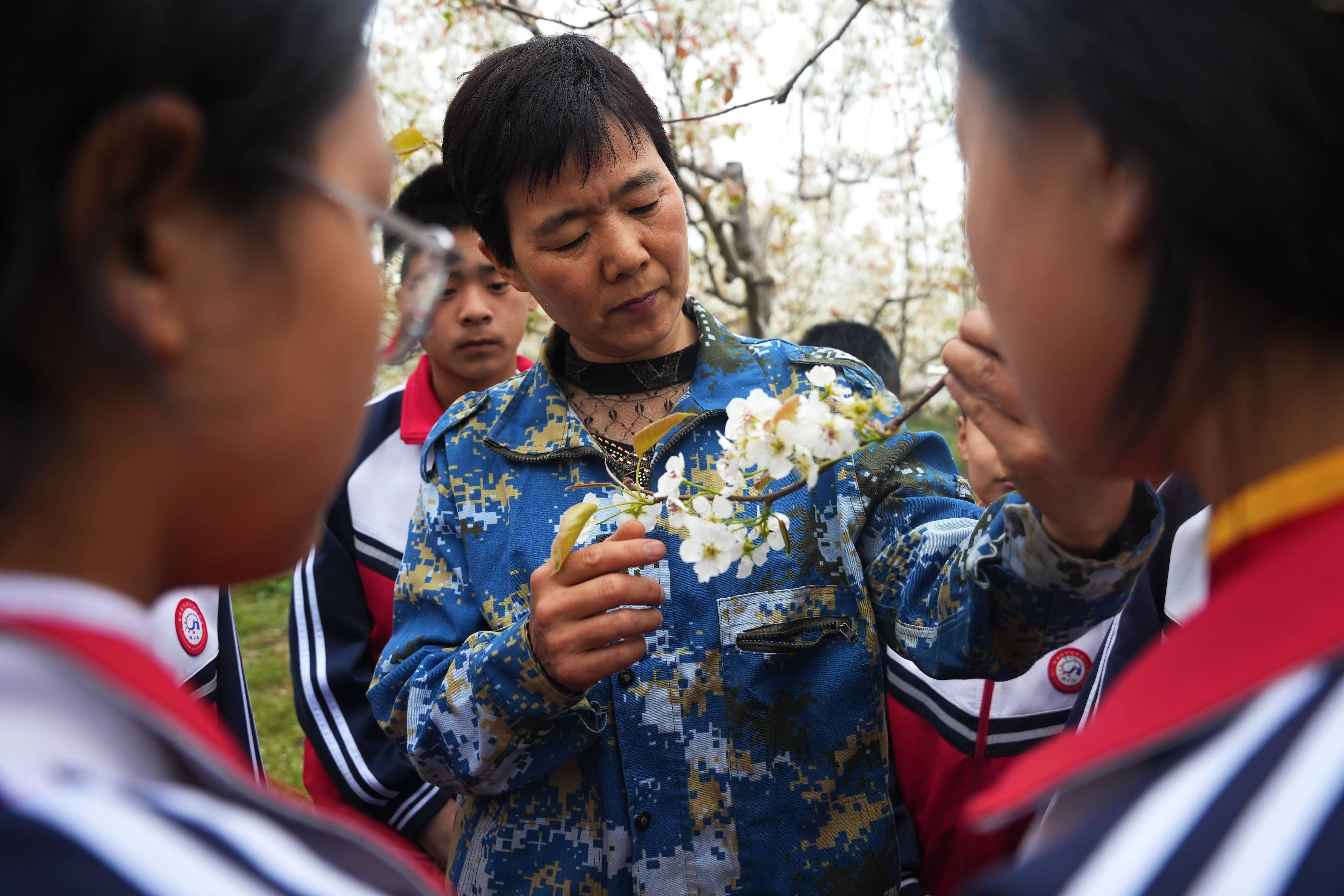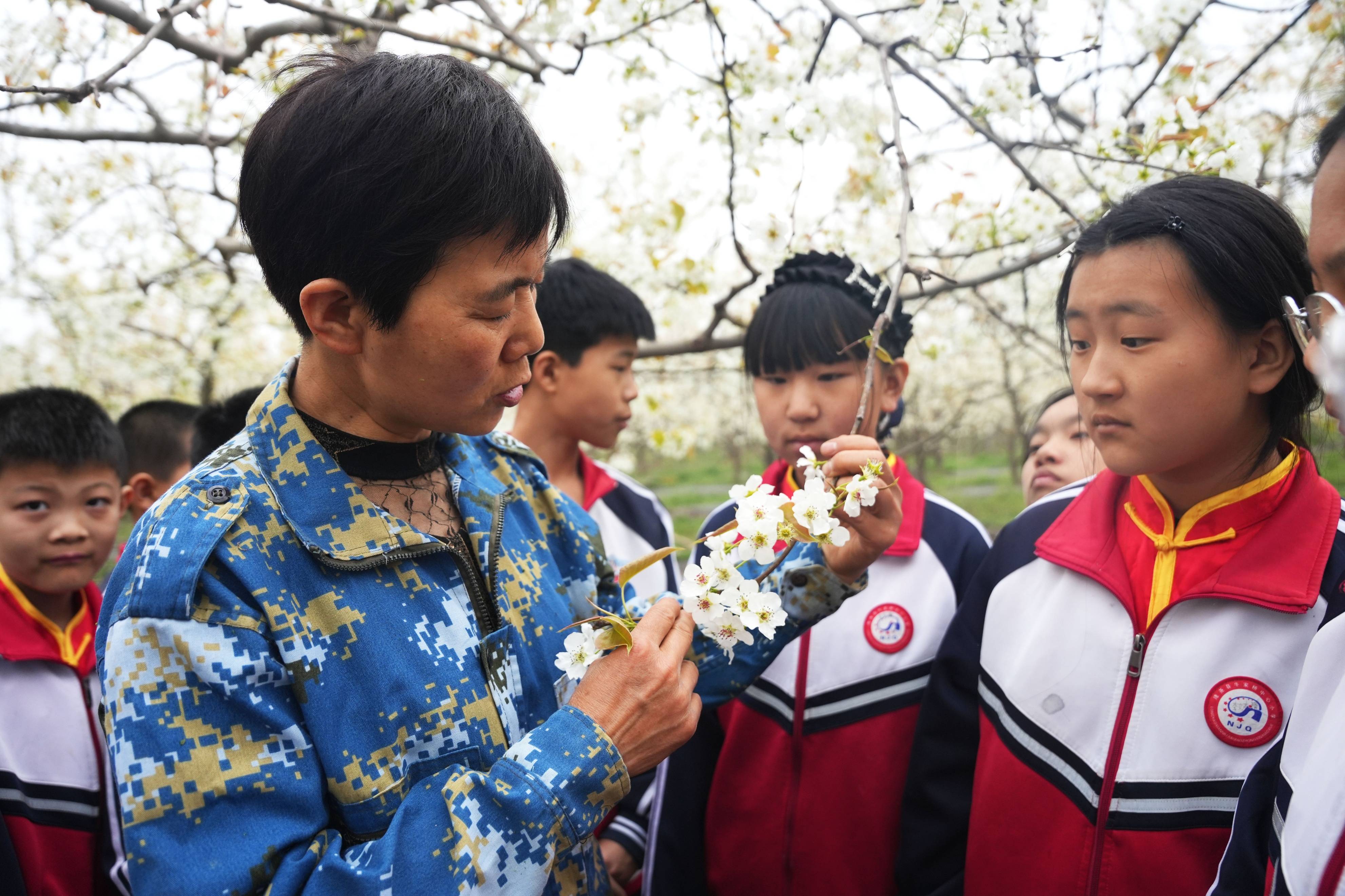 活动伊始,梨园种植户赵树敏向同学们介绍梨树的品种、品质以及梨花的开花时间、如何授粉等知识。同学们细心倾听、仔细观察,在大自然中汲取知识营养。