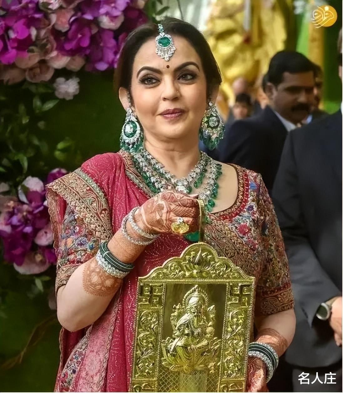 两人处着处着就看对眼了,不过多久两人就走进了婚姻的殿堂,而穆克什给的彩礼直接刷新印度纪录:黄金珠宝堆成小山,光给妮塔娘家的现金就够买栋写字楼了。