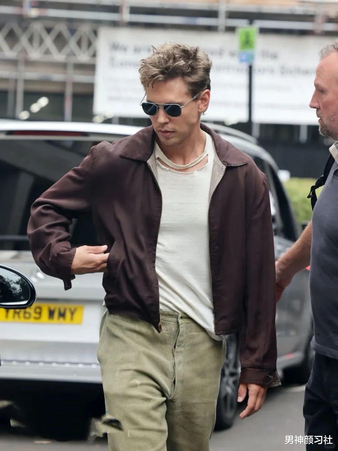 卡其色哈灵顿夹克 + 白色 T 恤 + 牛仔裤,记住领口的扣子不要全扣,微微敞开露出内搭的白边,脚踩一双德训鞋或乐福鞋,瞬间就能穿出 60 年代的复古电影感。