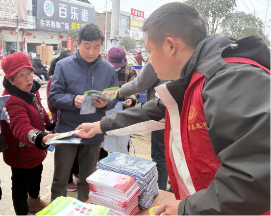 活动当天,谷堆乡街道上人头攒动,热闹非凡。一抹抹鲜艳的“志愿红”穿梭在人群中,成为春日街头最亮眼的色彩。来自该县科协和政法委的科普志愿者们早早便在集市显眼位置设立了宣传咨询台,桌上整齐地摆放着图文并茂的反诈骗宣传单、印有科普标识的实用围裙以及内容通俗易懂的防邪教知识手册。