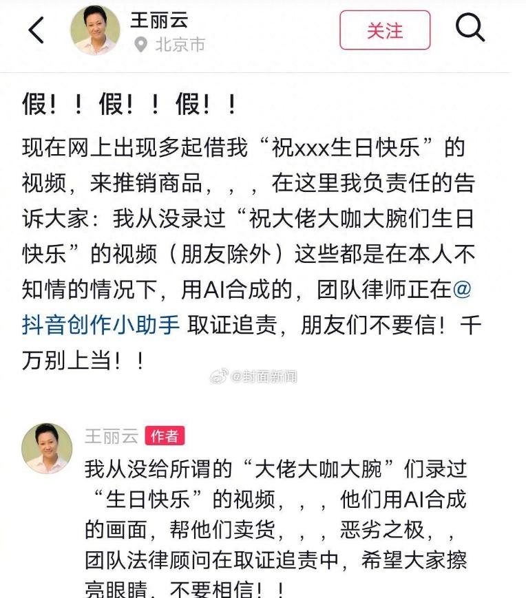 近日,70岁的演员王丽云在社交平台上发声辟谣,直指网络上流传的祝福视频纯属伪造。