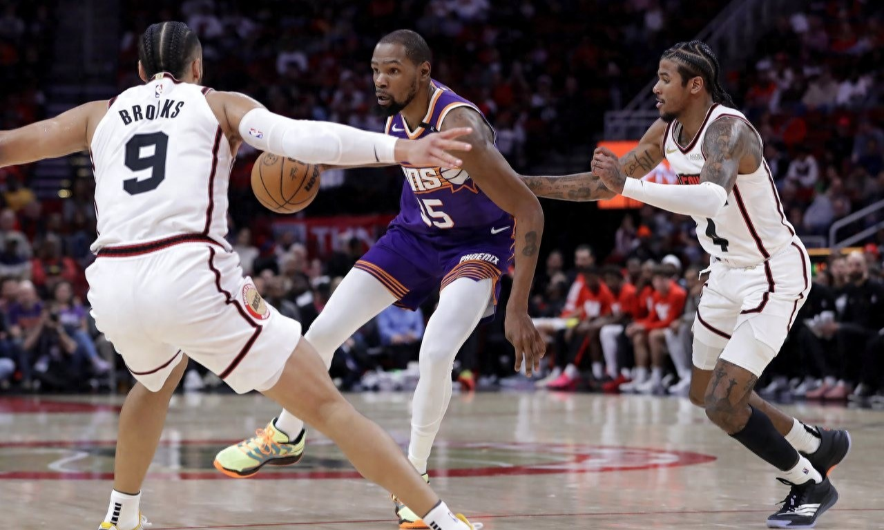 -- 火箭送出杰伦-格林(Jalen Green)、狄龙-布鲁克斯(Dillon Brooks)、2025年选秀会第10顺位选秀权,以及5个未来的二轮选秀权,向太阳换来凯文-杜兰特(Kevin Durant)。
