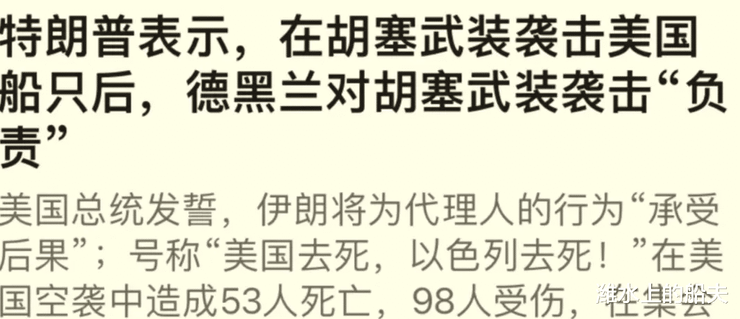 从现在开始,胡塞武装发射的每一颗子弹都将被视为伊朗的袭击!!