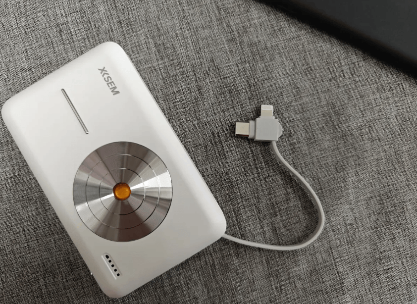 西圣PB S的综合实力相当能打,依托高能量密度半固态电芯,它在仅28.4毫米机身内容纳了10000mAh大容量电池,重量轻至约170g,体积比一副扑克牌更小巧,可轻松放入口袋。机身自带 Type-C 与 Lightning 双接口线,支持 PD 快充协议,有着22.5W的大输出功率,实测iPhone系列设备30分钟充电约55%,可充满一部零电量的iPhone约两次,让用户告别了充电焦虑。
