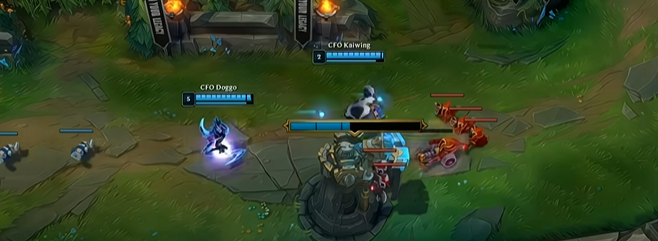 比赛前期,Doggo用德莱文换线上单,单杀了Doran的雷克塞,获得了启动资金,这为他后续的无解肥之路奠定了基础。