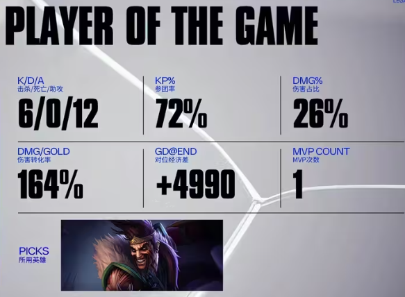 HongQ在中后期打出了最佳新秀的表现,Doggo的德莱文完美发挥,获得了MVP的称号。CFO的双C配置出色,战术运用大胆且成功,充分展现了他们的实力。
