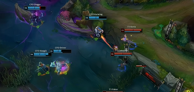 比赛的关键转折点,Doggo越塔强杀Gumayusi女警的场面,成为了这场比赛的高光时刻。而Faker急着TP绕后,却被反杀,无奈之下秀出了倒三角的姿势。