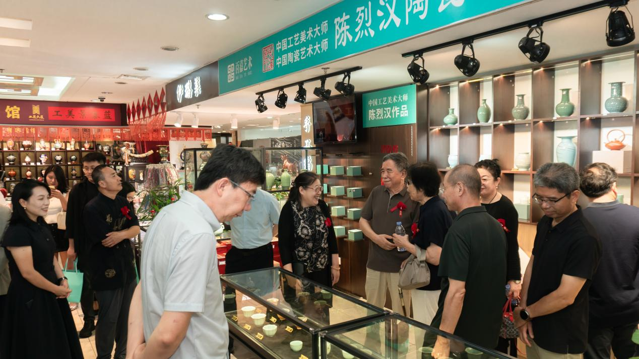 ▲来自工艺美术与陶瓷行业的协会领导、多位中国工艺美术大师、学术界专家与文化机构代表们,参观陈烈汉陶瓷艺术作品首家专卖店