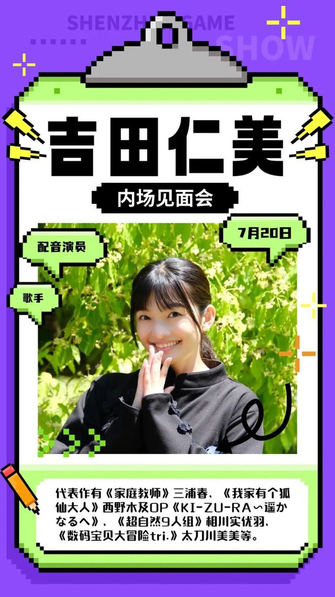 吉田仁美,代表作有《家庭教师》三浦春、《我家有个狐仙大人》西野木及OP《KI-ZU-RA∽遥かなるヘ》、《超自然9人组》相川实优羽、《数码宝贝大冒险tri.》太刀川美美等。
