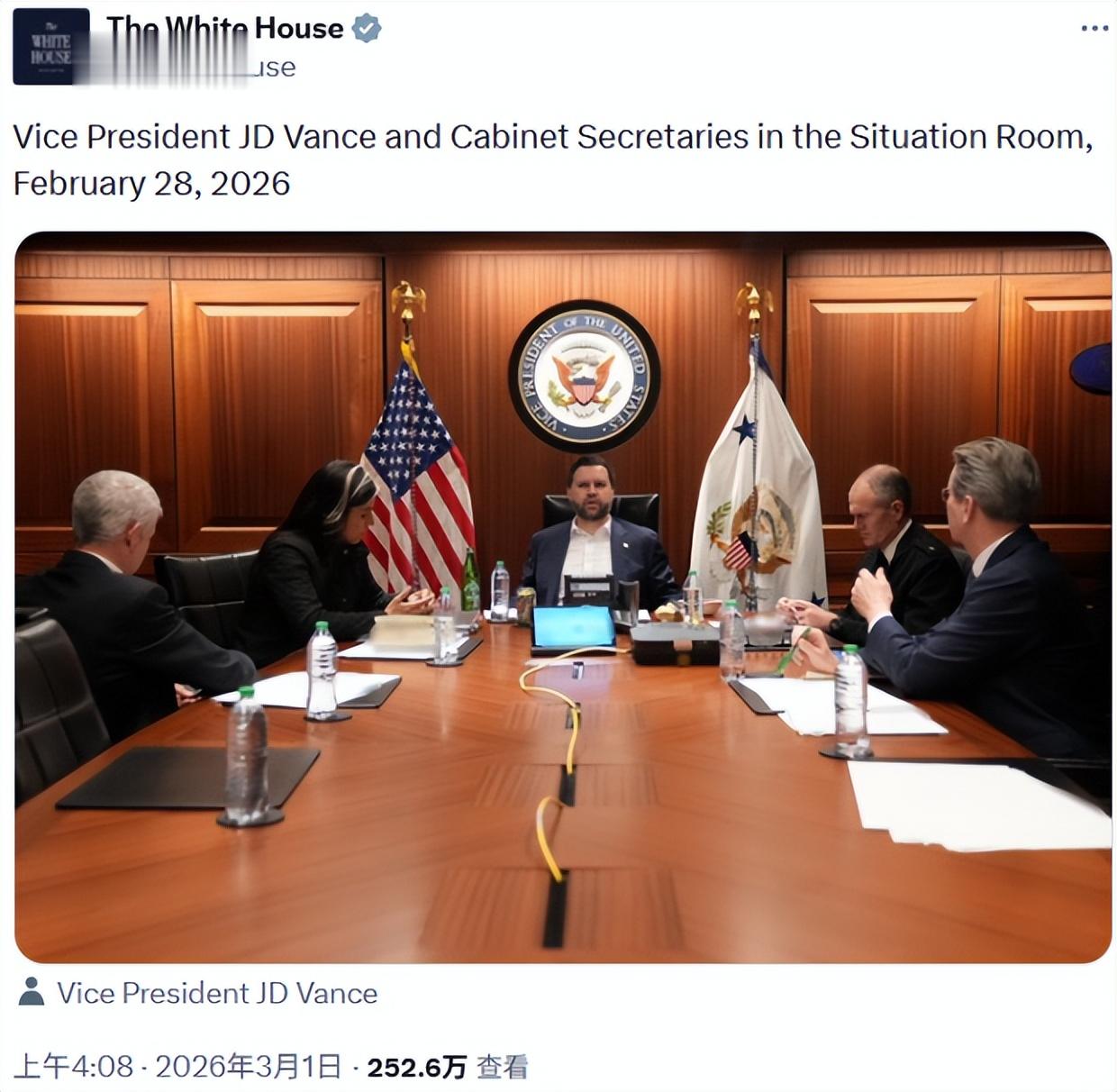 白宫发的照片里,万斯坐在战情室角落,领带松垮,面前一罐健怡山露汽水,神情像被临时叫来开会的实习生。