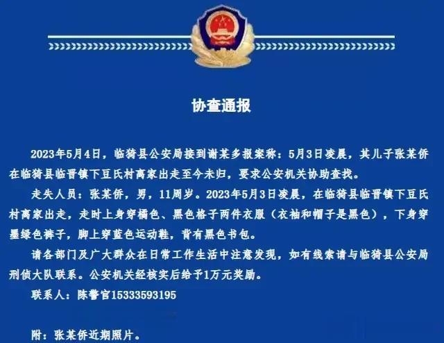 经过警方几天的寻找孩子还是没有找到,警方采取万元悬赏寻人,希望能早日将孩子找到,有线索的提供线索。